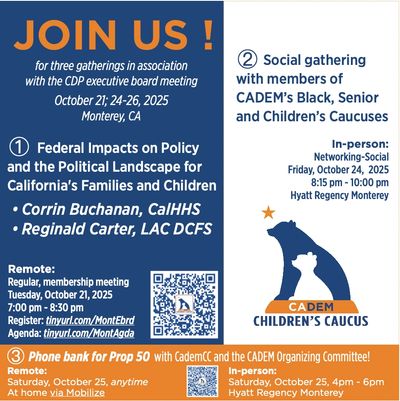 JoinUS! for CademCC's three meetings around the CDP Autumn executive board meeting in Monterey. CA: