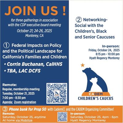 2) Delegates (and friends) attending the Eboard meeting in-person at the Hyatt Regency in Monterey, are invited to JoinUS! for a joint networking-Social with the Children's, Black and Senior caucuses: